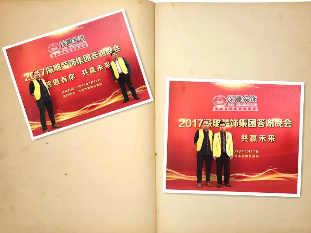 左為設(shè)計部副總監(jiān)與設(shè)計部總監(jiān)合影,右為設(shè)計部副總監(jiān)和深雕裝飾董事長陳志藝先生。